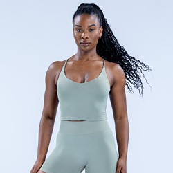 وصول جديد للنساء ملابس نشطة بدون خياطة صليب جميل ظهر صالة ألعاب رياضية حمالات صدر رياضية غير ملحومة